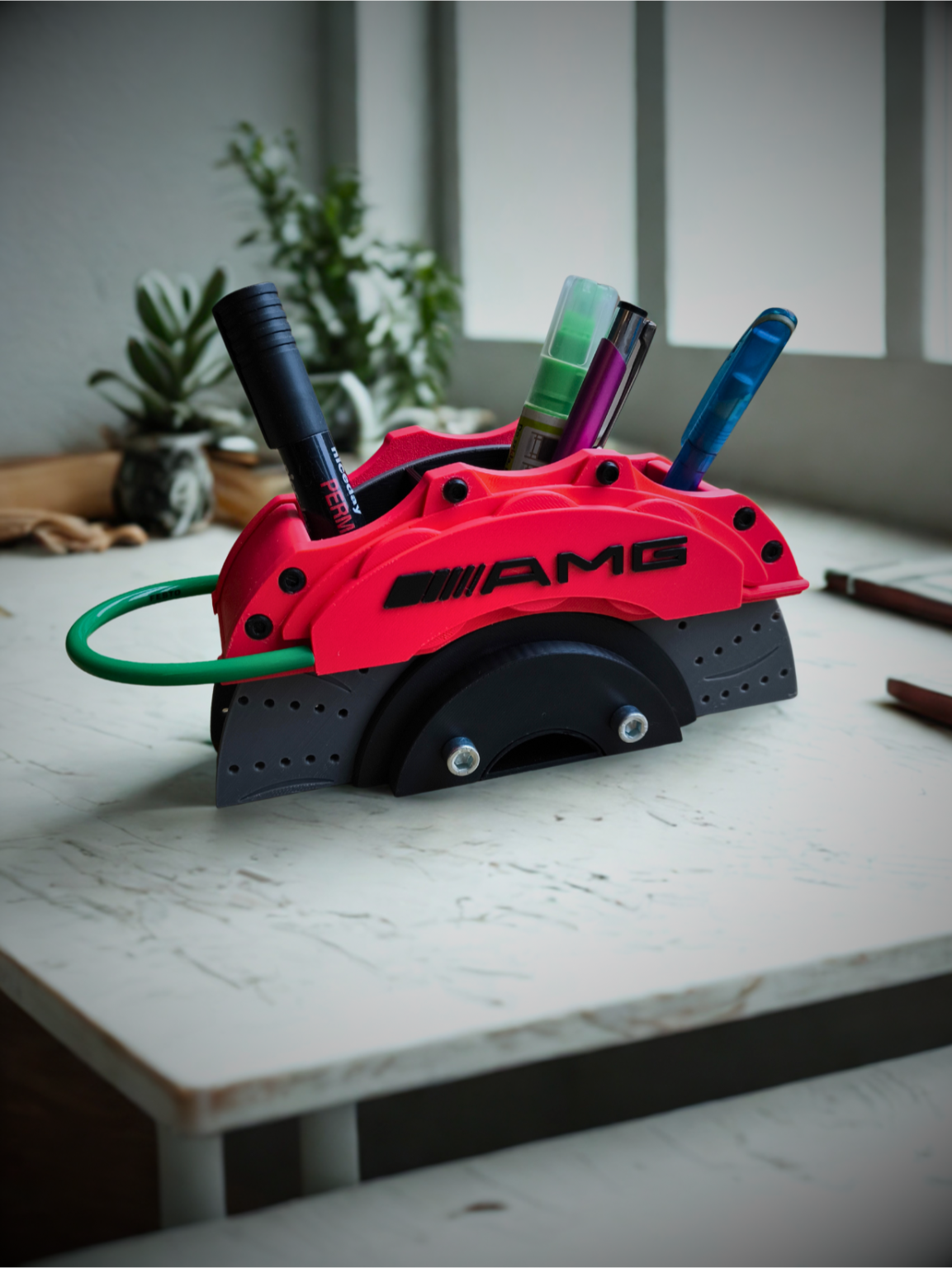 Dodaj charakteru swojemu biurku dzięki wyjątkowemu organizerowi inspirowanemu designem tarczy hamulcowej, wykonanemu w technologii druku 3D. To nie tylko praktyczny gadżet, ale także stylowy akcent dla fanów motoryzacji i nowoczesnego wzornictwa.