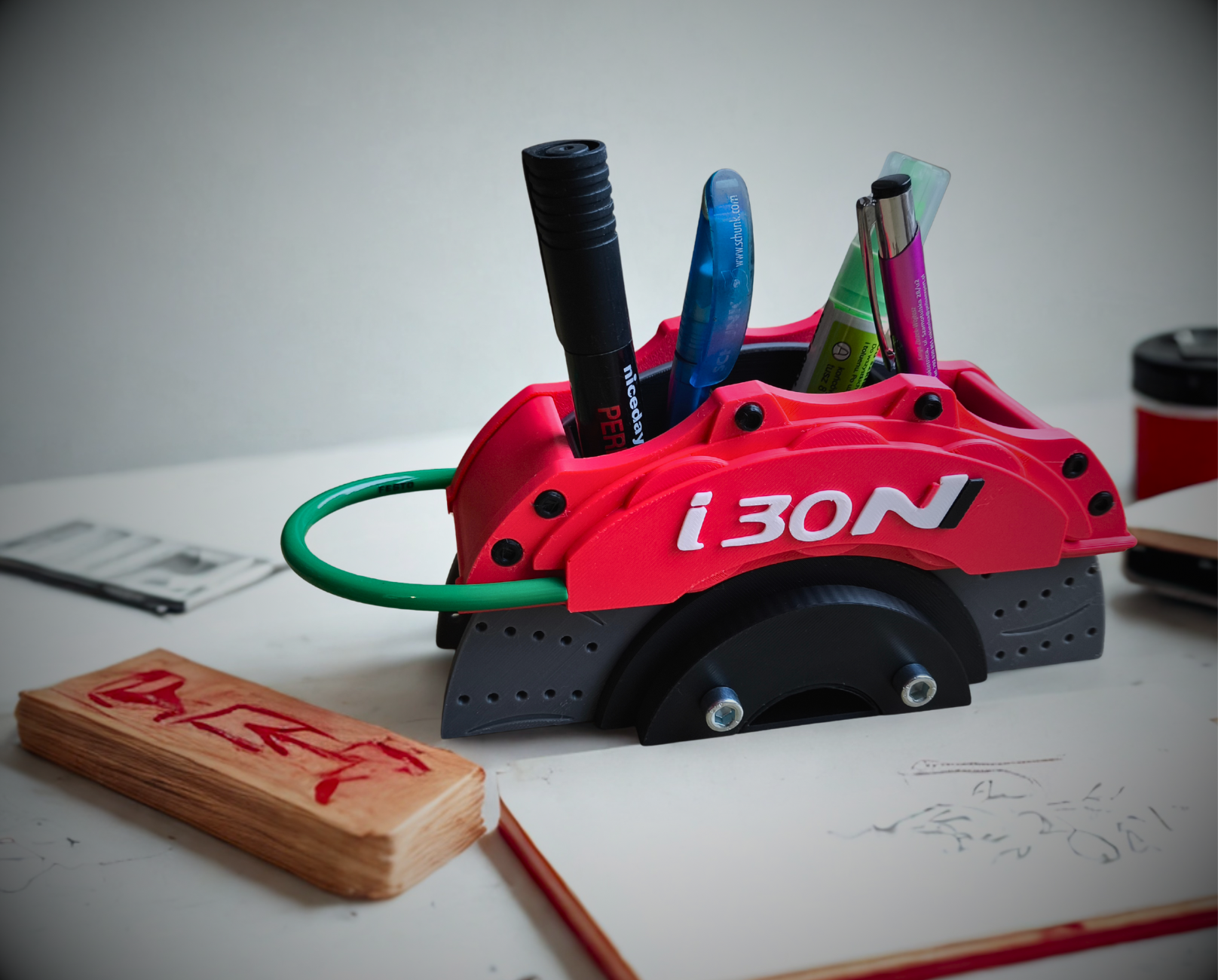 Dodaj charakteru swojemu biurku dzięki wyjątkowemu organizerowi inspirowanemu designem tarczy hamulcowej, wykonanemu w technologii druku 3D. To nie tylko praktyczny gadżet, ale także stylowy akcent dla fanów motoryzacji i nowoczesnego wzornictwa.