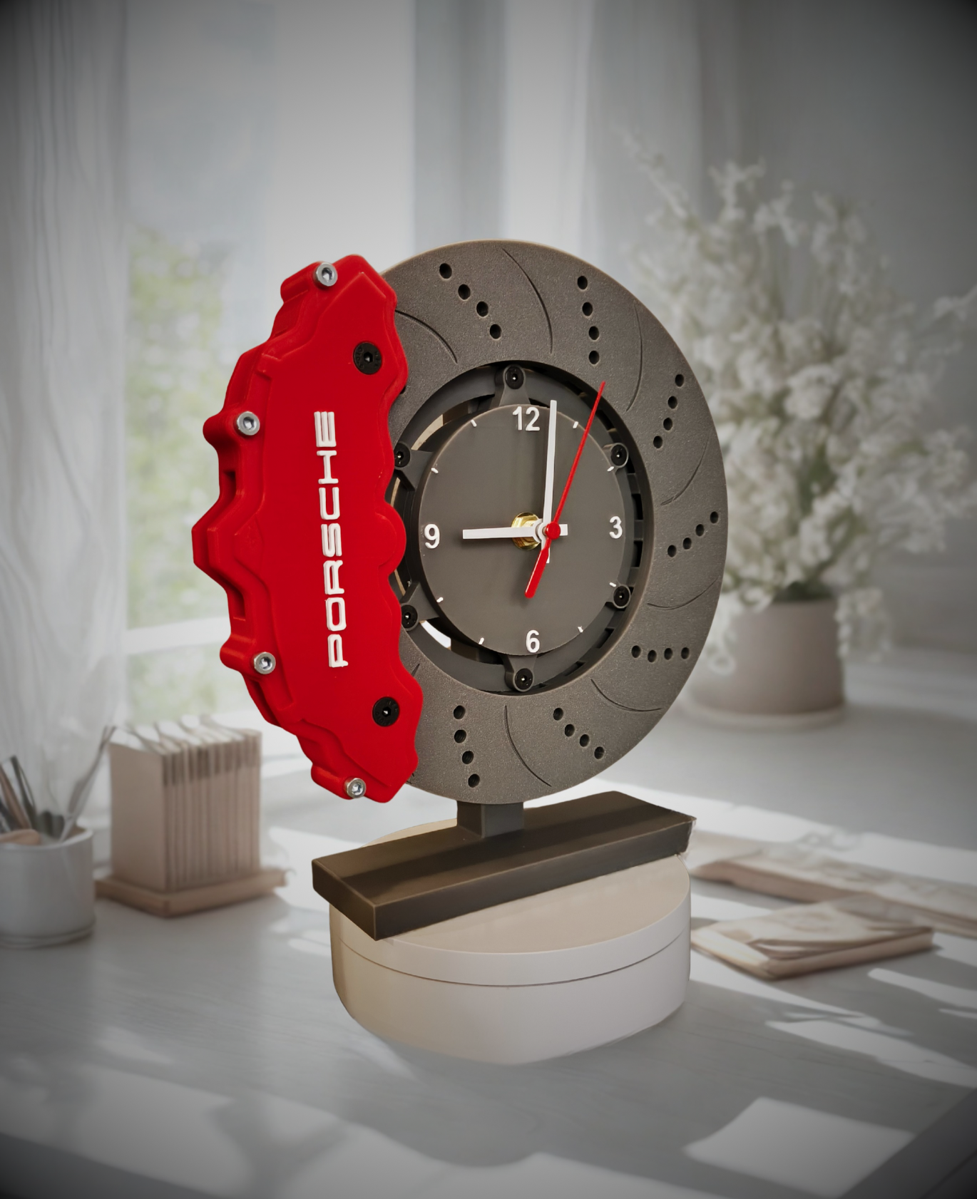 Wprowadź do swojego wnętrza nutę pasji i technicznego designu dzięki zegarowi inspirowanemu tarcza hamulcową. Ten wyjątkowy gadżet to połączenie funkcjonalności, estetyki i precyzji, wykonany w technologii druku 3D z dbałością o każdy detal.